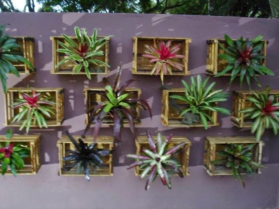 Uma das coisas que mais gosto nos jardins verticais é que não há limites em suas criações, pois mesmo as opções caseiras e de baixo investimento financeiro ficam lindas. Como na maioria das vezes essas opções são de irrigação manual, precisam de dedicação diária, de acordo com cada tipo de planta escolhida. São inúmeras as formas de DIY (Di Yourself = faça você mesmo) para jardins verticais, eles podem ser feitos com garrafas PET, canos PVC, pallet, caixotes de feiras, brises, onde tanto podem ser usados vasinhos como também trepadeiras, ou colocar os vasinhos na própria parede, entre tantas outras opções, basta usar a criatividade e gostar de plantas.